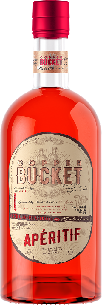 Copper Bucket, Aperitif — оригинальный напиток крепостью 12%, в состав которого входит более 15 натуральных компонентов, придающих аперитиву характерные цитрусовые оттенки во вкусе и аромате. Для создания аперитива используют свежую корку апельсина, мандарина и грейпфрута, плоды шиповника и боярышника, тимьян, кориандр, листья грецкого ореха, цветы белой акации и ряд других растительных компонентов. Аперитив употребляется до еды для возбуждения аппетита, также напиток отлично сочетается с игристым вином и льдом.