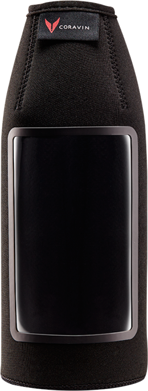 На лицевой стороне изделия размещено большое окно, закрытое прозрачной полимерной пленкой. Оно позволяет четко рассмотреть этикетку бутылки и прочитать на ней нужную информацию. С обратной стороны чехол Коравин для стандартных бутылок имеет удобную застежку на молнии, которая облегчает вставление и извлечение бутылки. Высокое качество этого аксессуара уже было отмечено многими пользователями системы Coravin. Он не требователен в уходе, прост в использовании. Купить чехол Coravin для стандартных бутылок стоит для частного и профессионального использования.