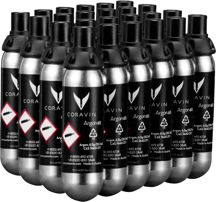 Системы подачи вина Coravin без открытия бутылки нуждаются в периодической замене расходных элементов. Когда в наборе они заканчиваются, нужно отдельно приобрести капсулы с газом Аргон. С их помощью оборудование можно будет снова вернуть в строй. Одна капсула с газом Аргон позволяет налить порядка 15 бокалов вина по 150 мл, что равняется трем бутылкам алкоголя стандартного объема.