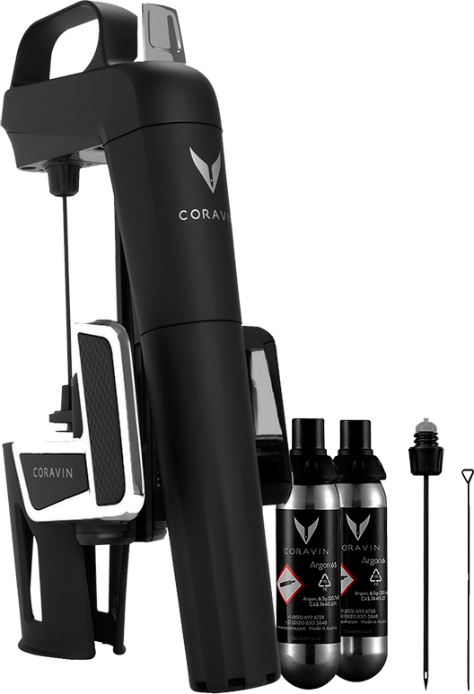 В комплекте: Система Coravin, 2 капсулы с аргоном, стандартная игла и чехол на бутылку.