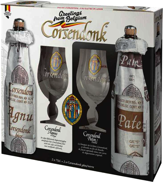 Corsendonk, Agnus Tripel & Pater Dubbel, & 2 glasses, in gift box, 0.75 л.