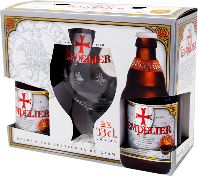Набор из 2-х бутылок бельгийского янтарного пива "Тамплиер", объемом 330 мл каждая, и стильного фирменного бокала станет отличным подарком другу, коллеге и просто ценителю высококачественного пенного напитка.