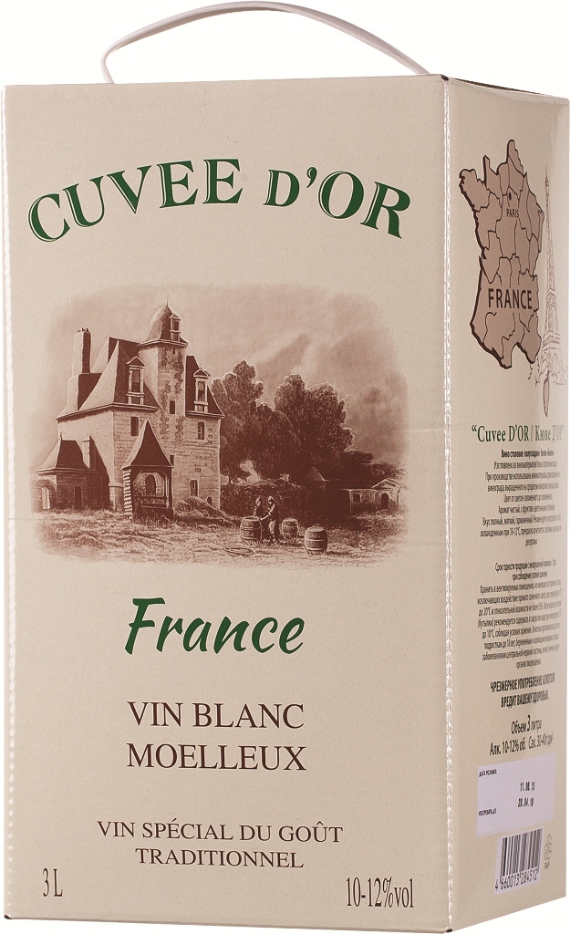 Cuvee d'Or, Blanc Moelleux — белое полусладкое столовое вино, изготовленное компанией Олимп из белых сортов винограда, выращенных на виноградниках во Франции. Винификация проходит по традиционному методу в стальных резервуарах. Вино хорошо сочетается с закусками, рыбой под соусом или приготовленной на гриле, блюдами из мяса птицы и овощными салатами.