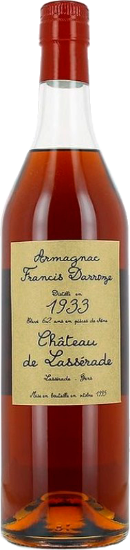 Darroze, Chateau de Lasserade, Armagnac, 1933 — роскошный миллезимный арманьяк, покоряющий своими органолептическими характеристиками с первых секунд. В его производстве используются спирты, выдержанные в дубовых бочках в течение долгих 62 лет. Розлив винтажа 1933 года состоялся в октябре 1995 года.
