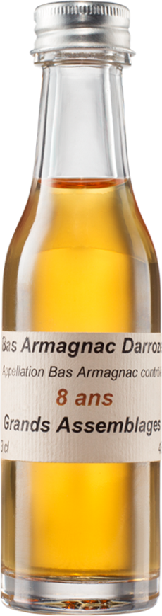 Les Grands Assemblages, 8 ans d'age — это уникальный купаж арманьяков, срок выдержки самого молодого из которых составляет 8 лет. Это — самый "юный" арманьяк в серии. Он не успел полностью вобрать свойства древесины и поэтому обладает легким фруктовым характером.