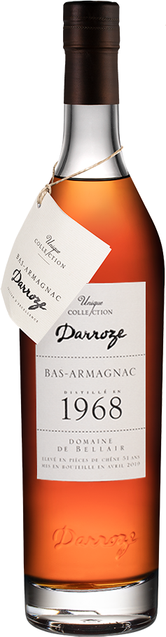 Darroze, Bas-Armagnac "Domaine de Bellair", 1968 — превосходный классический арманьяк от патриарха арманьяка Франсиса Дарроза. Спирты для напитка изготовлены в имении Domaine de Bellair знаменитого региона Ба-Арманьяк, из винограда сорта Бако урожая 1968 года. Арманьяк был выдержан в дубовых бочках в течение 51 года и разлит в стеклянные бутылки в апреле 2019 года. Напиток не подвергался холодной фильтрации и не разбавлялся, поэтому он сохранил свой оригинальный вкус и бочковую крепость.