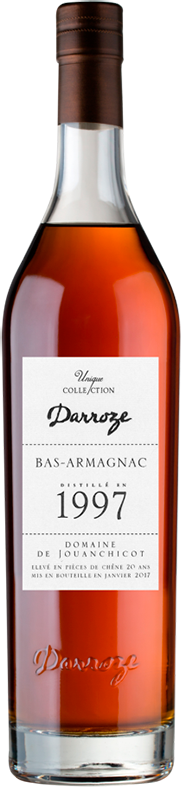 Darroze, Bas-Armagnac "Domaine de Jouanchicot", 1997 — превосходный классический арманьяк от патриарха арманьяка Франсиса Дарроза. Спирты для напитка изготовлены в имении Domaine de Jouanchicot знаменитого региона Ба-Арманьяк, из винограда сорта Бако урожая 1997 года. Арманьяк был выдержан в дубовых бочках в течение 20 лет и разлит в стеклянные бутылки в январе 2017 года. Напиток не подвергался холодной фильтрации и не разбавлялся, поэтому он сохранил свой оригинальный вкус и бочковую крепость.