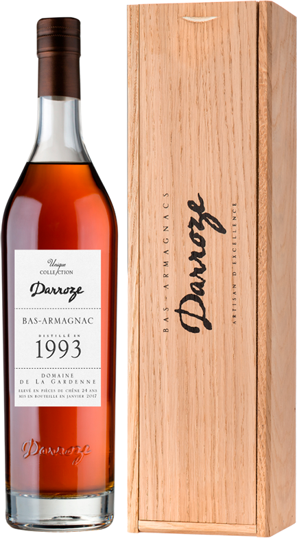 Darroze, Bas-Armagnac "Domaine de La Gardenne", 1993 — превосходный классический арманьяк от патриарха арманьяка Франсиса Дарроза. Спирты для напитка изготовлены в имении Domaine de La Gardenne знаменитого региона Ба-Арманьяк, из винограда сорта Бако урожая 1993 года. Арманьяк был выдержан в дубовых бочках в течение 24 лет и разлит в стеклянные бутылки в январе 2017 года. Напиток не подвергался холодной фильтрации и не разбавлялся, поэтому он сохранил свой оригинальный вкус и бочковую крепость.