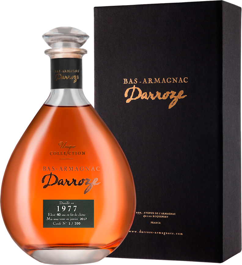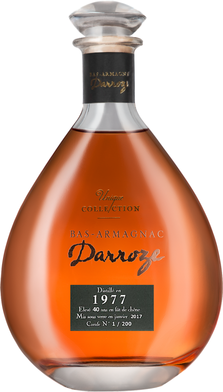 Darroze, Bas-Armagnac "Domaine de La Poste", 1977 — превосходный классический арманьяк от патриарха арманьяка Франсиса Дарроза. Спирты для напитка изготовлены в имении Domaine de La Poste знаменитого региона Ба-Арманьяк, из винограда сорта Бако урожая 1977 года. Арманьяк был выдержан в дубовых бочках в течение 40 лет и разлит в стеклянные бутылки в январе 2017 года. Напиток не подвергался холодной фильтрации и не разбавлялся, поэтому он сохранил свой оригинальный вкус и бочковую крепость.