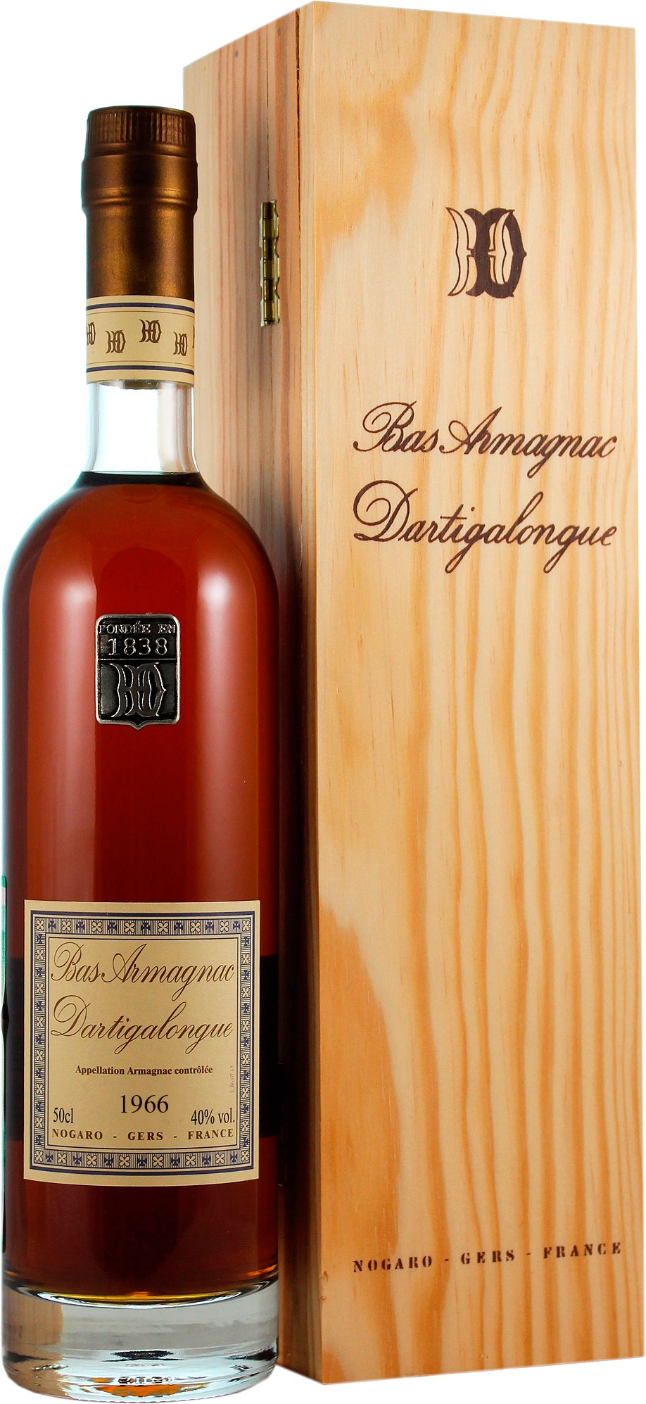 Dartigalongue, Bas Armagnac, 1966 — миллезимный арманьяк урожая 1966 года, созданный из лучших спиртов и выдержанный в дубовых бочках. Арманьяк демонстрирует роскошный аромат и богатый, соблазнительный вкус с долгим, пьянящим послевкусием, он является отличным дижестивом.