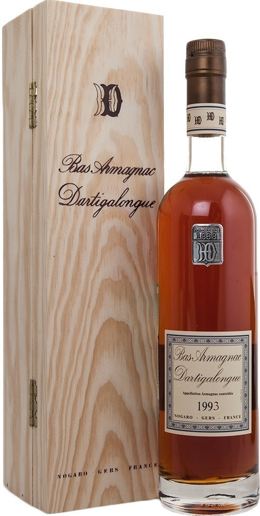 Dartigalongue, Bas Armagnac, 1993 — миллезимный арманьяк урожая 1993 года, созданный из лучших спиртов и выдержанный в дубовых бочках. Для изготовления арманьяка используется виноград сортов Уни Блан, Бако, Фоль Бланш, выращенные в регионе Ба Арманьяк, Гасконь. Винтаж 1993 года демонстрирует щедрый аромат, мощный вкус и сладковатое послевкусие. Арманьяк является отличным дижестивом, также можно подавать с кофе или сигарой.