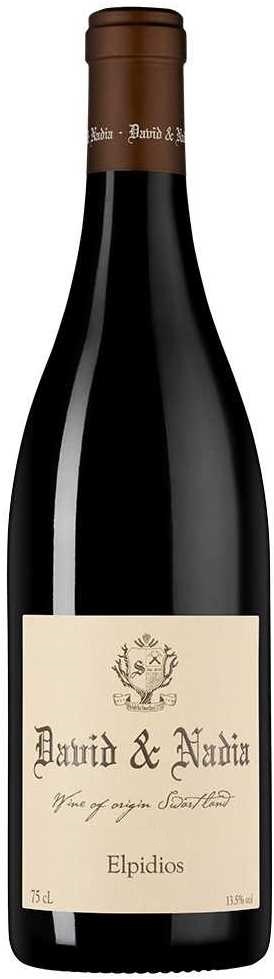 David & Nadia, Elpidios, Swartland — гармоничное красное вино, созданное из винограда сортов Гренаш, Сира, Пинотаж, Кариньяно и Сенсо. Ягоды произрастают на виноградниках хозяйства с гранитными, сланцевыми, железистыми и глинистыми почвами. Сбор урожая проводится вручную в момент оптимальной спелости ягод, на винодельне плоды подвергаются предферментационной мацерации на кожице с последующей ферментацией с использованием местных дрожжей в бетонных емкостях. Выдерживается вино 12 месяцев в бетонных резервуарах объемом 2700 литров, бочках из французского дуба объемом 500 литров и фудрах объемом 4100 литров и бутилируется без фильтрации. Перед поступлением в продажу вино дополнительно выдерживается в бутылках в погребах винодельни в течение 18 месяцев.