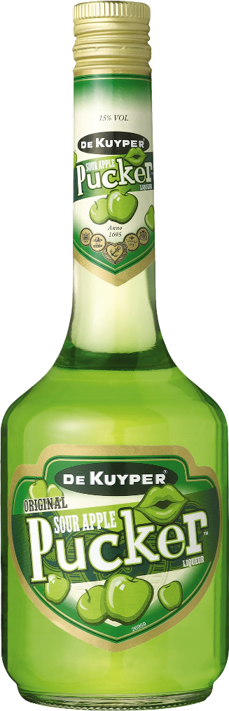 De Kuyper, Pucker, Sour Apple — ликер с ярко выраженным вкусом свежих зеленых яблок, усиленным нежным древесным ароматом корицы и яблок кулинарных сортов, — и все это на фоне приятного баланса сладкого и кислого вкусов. De Kuyper, Pucker, Sour Apple можно пить в чистом виде или со льдом, но, безусловно, лучше всего его использовать в коктейлях. «Яблочный мартини» стал обязательной позицией любого меню коктейльного бара наряду с «Тоффи эппл мартини» и т.д.