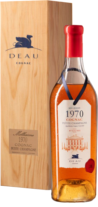 Миллезимный коньяк Deau, Cognac Petite Champagne, 1970 создан из коньячных спиртов одного года урожая. Виноград выращивается на виноградниках терруара Пти Шампань, отличающимся морским климатом и глинистыми почвами, придающими изысканные и глубокие фруктовые оттенки аромату и вкусу напитка. Коньяк, выпущенный ограниченным тиражом, выдержан и разлит в бутылки без каких-либо добавлений или изъянов, что позволяет раскрыть его полную индивидуальность.