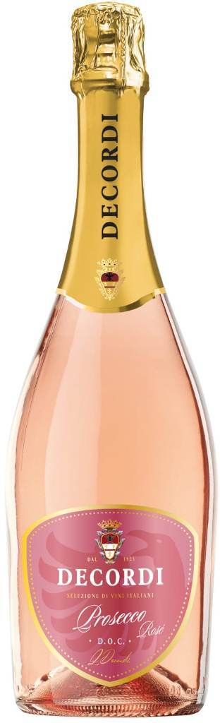 Decordi, Prosecco Rose — элегантное розовое игристое вино категории Брют, созданное из винограда сортов Глера и Пино Нуар, которые выращивается на виноградниках региона Венето в северо-восточной части Италии. С севера от холодных ветров виноградники защищает горная цепь Доломитов, с юга — ветер, дующий со стороны Адриатического моря, способствует достаточному количеству осадков, особенно в летнее время. Заметные колебания ночных и дневных температур создают условия для созревания ягод с насыщенным ароматом. По окончании сбора урожая плоды подвергаются прессованию с последующей винификацией, которая включает в себя краткую мацерацию на кожице и ферментацию при контролируемой температуре. Игристое вино великолепно в качестве аперитива, гармонично сочетается с морепродуктами, салатами и сырами.