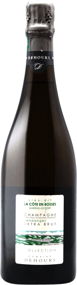 Dehours & Fils, Cote en Bosses, Extra Brut — подписанный Jérôme Dehours, представляет собой винтаж высокого класса. Это шампанское, которое найдет свое место на больших гастрономических столах в качестве сопровождения к прекрасному белому мясу или сыру, как пармезан. Это шампанское, которое происходит с участка в деревне Марей-ле-Порт, расположенной над деревней, у подножия холма. Эта старая лоза засажена тремя традиционными сортами шампанского: Пино Нуар, Пино Менье, Шардоне. Оригинальный подход, унаследованный от ошибки при замене мертвых лоз, который позволяет обнаружить выражение терруара без сортового фильтра. Вина ферментировались и выдерживались на полных осадках в бочках. Винификация, которая раскрывает всю силу и выражение вина.