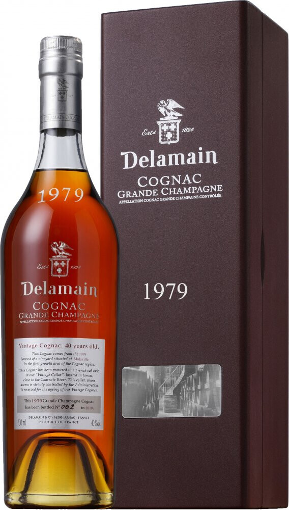 Деламен — один из трех коньячных домов, кому разрешено производить винтажные коньяки. Особенностью таких коньяков является то, что их производят из винограда, собранного исключительно в удачные урожайные годы. Vintage 1979 года представляет собой ассамбляж из спиртов урожая 1979 года, дистиллированных в регионе Сент-Мэм (Saint-Même) в Гранд Шампани. После дистилляции спирты выдерживались в 350-литровой бочке из лимузенского дуба в течение 40 лет.