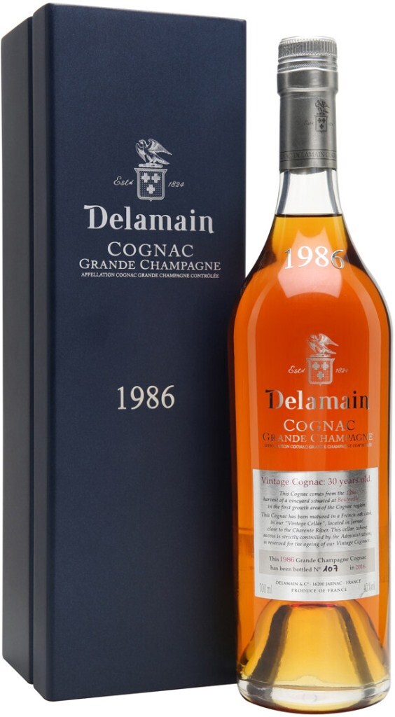 Деламен — один из трех коньячных домов, кому разрешено производить винтажные коньяки. Особенностью таких коньяков является то, что их производят из винограда, собранного исключительно в удачные урожайные годы. Vintage 1986 года представляет собой ассамбляж из спиртов урожая 1986 года. Он был собран на винограднике в Бутвиле, одном из лучших терруаров Коньяка. После дистилляции спирты выдерживались в бочках из французского дуба, установленных в "Винтажном погребе" Delamain, в городе Жарнак неподалеку от реки Шарант. Доступ в эти погреба строго ограничен, они предназначены специально для винтажных коньяков. Винтаж 1986 прошел выдержку в течение 30 лет. Розлив по бутылкам состоялся в 2016 году.