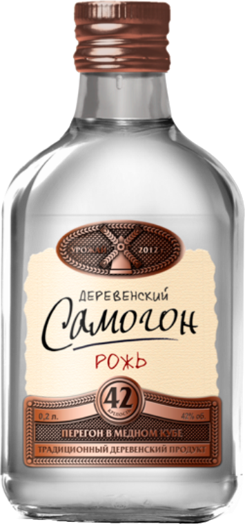 Деревенский Самогон, Рожь — это премиальный напиток в стильной бутылке, которая напоминает винтажный графин XVIII века с закупоренной дубовой пробкой. Он изготавливается из самого лучшего ржаного зерна, которое измельчают и заквашивают. При достижении браги оптимальной зрелости, ее два раза перегоняют с помощью медного куба. Медный куб еще издревле использовался при самогоноварении. Перед тщательной фильтрацией наиболее крупные примеси удаляют вручную. В результате получается абсолютно прозрачный крепкий спирт высочайшего качества, который оправдывает приложенные усилия. Благодаря высокому качеству и оригинальной бутылке, данный напиток может стать хорошим презентом, напоминая о лучших русских традициях.