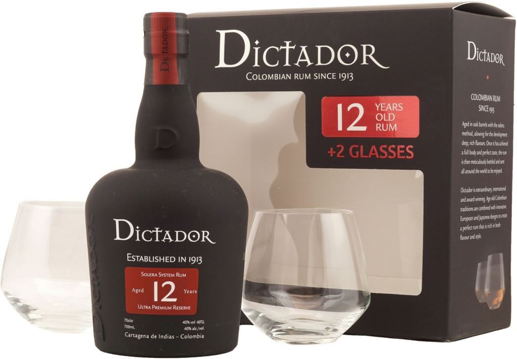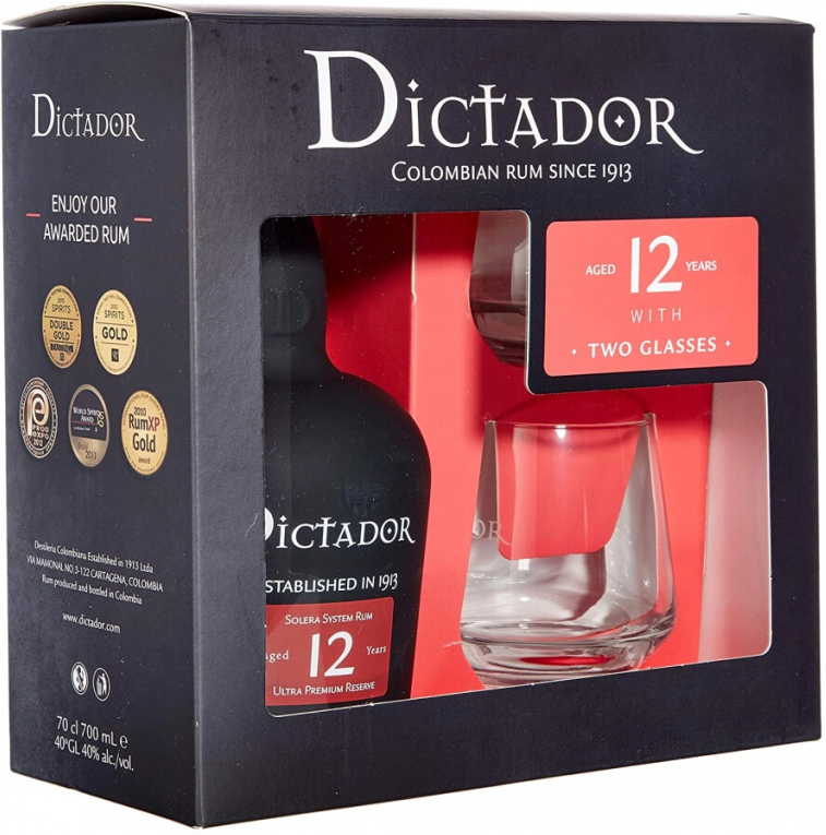 Ром Dictador, 12 Years Old, Solera Rum, with 2 glasses in gift box, 0.7 л.