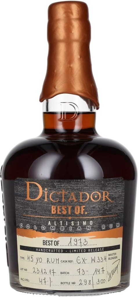 Для создания рома Dictador, "Best Of" Altisimo, 1973 производитель использовал высококачественные спирты, дистиллированные в 1973 году, которые были выдержаны в дубовых бочках на протяжении 40 лет.