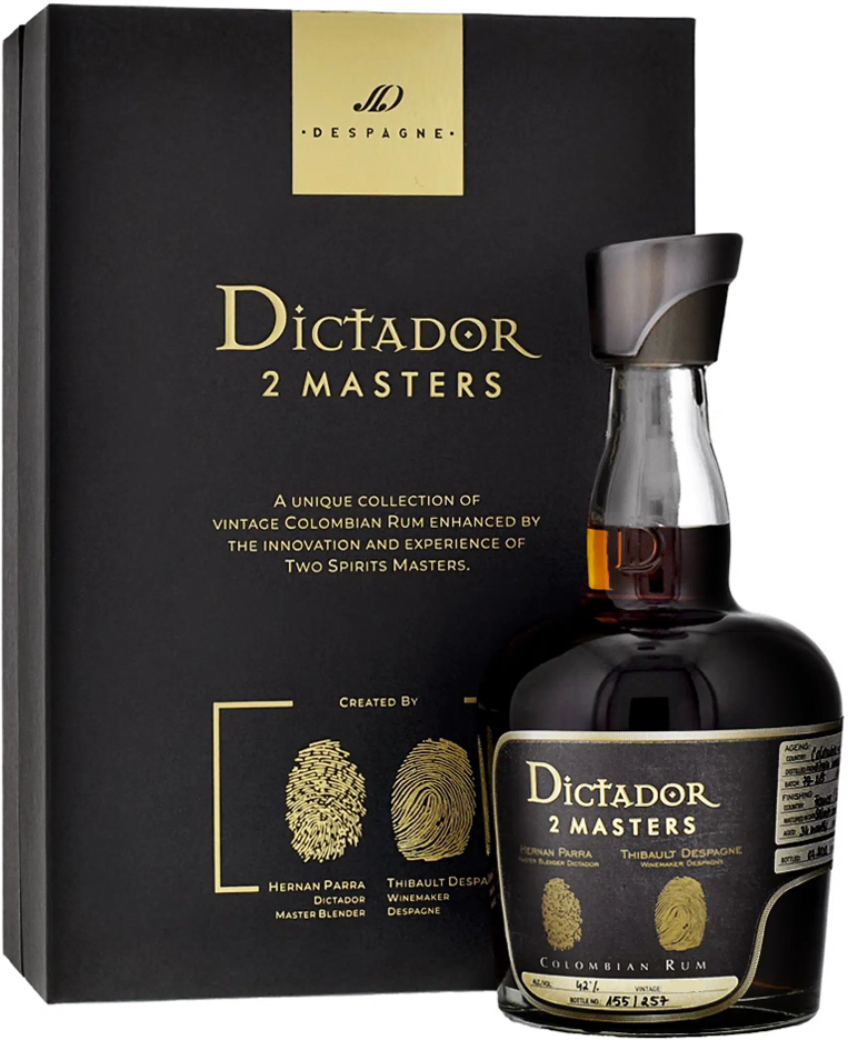 Изысканный ром Dictador, "2 Masters" Despagne был создан при сотрудничестве с французским Chateau Despagne. Тираж партии составил 384 бутылки. Для производства был использован свежеотжатый сок сахарного тростника, сброженный на собственных дрожжах. Дистилляция была осуществлена в 1980 году, частично в медном перегонном кубе, частично в стальной колонне непрерывного действия. Выдержка спиртов производилась в дубовых бочках из-под портвейна на протяжении 37 лет. Далее спирты дозревали в течение 6 месяцев в новых и двулетних барриках из-под красного вина "Chateau Despagne".