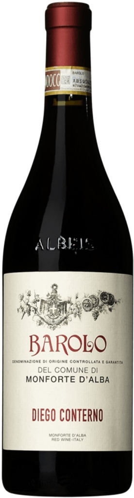 Diego Conterno, Barolo del Comune di Monforte d'Alba — впечатляющее красное сухое вино с выразительным ароматом и мощным, но при этом изысканным, соблазнительно фруктовым вкусом, ярко демонстрирующее уникальные особенности терруара своего происхождения. Вино изготавливается из автохтонного сорта винограда Неббиоло, выращенного органическими методами в коммуне Монфорте д'Альба. Виноградные лозы, средний возраст которых составляет 20 лет, культивируются на участках "Pajana" и "Gris" знаменитого крю Ginestra. Экспозиция участков — восточная и юго-восточная, почвы представляют собой смесь из глины, песка и известнякового мергеля.