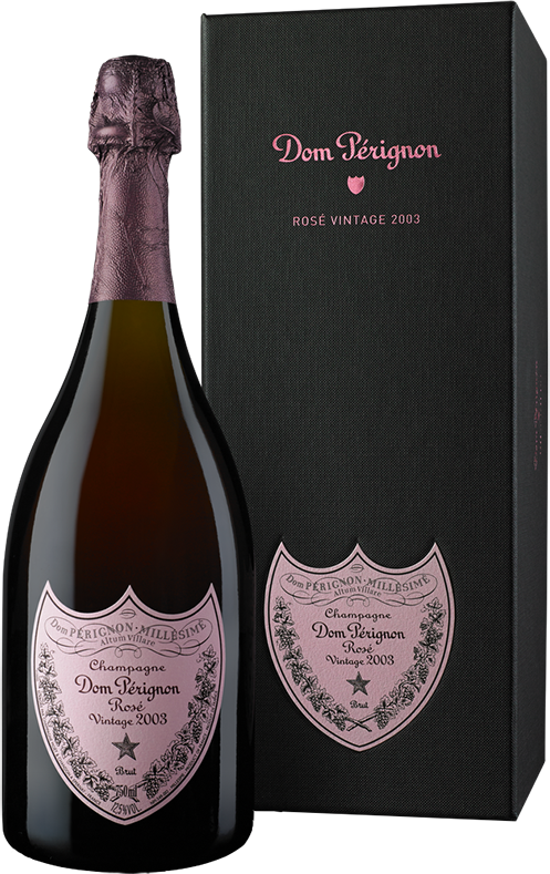 Dom Perignon, Brut Rose Vintage, 2003 — абсолютно великолепное вино, которое производится только в уникальные урожайные года, воплощение роскоши, символ непреодолимого соблазна и чувственности. Вино созревает как минимум 8 лет в подвалах винодельни.