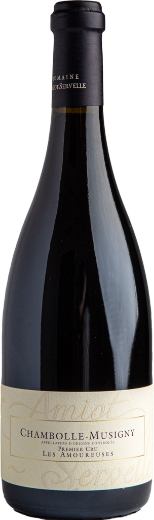 Domaine Amiot-Servelle, Chambolle-Musigny Premier Cru, Les Amoureuses — утонченное, ароматное вино уровня Гран Крю, изготовленное из органического винограда сорта Пино Нуар с лоз старше 45 лет. Урожай для его производства, собранный в оптимальной степени зрелости, поступает с участка площадью в 45 соток, расположенного в верхней северной части апелласьона и имеющего очень красивую экспозицию и неглубокую, очень известковую, каменистую, слегка суглинистую почву. Название вина — "Влюбленные" — имеет двойное значение: для одних это вино, которое заставляет влюбиться, для других это вино, "в котором есть любовь" — бургундское выражение, описывающее вино с великолепным букетом. После ферментации вино выдерживается около 18 месяцев в бочках из французского дуба, из которых 50% новые. Оно полностью проявляет себя в возрасте 8-10 лет; общий потенциал хранения превышает 20 лет.