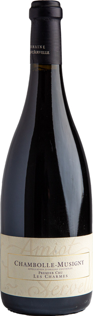 Domaine Amiot-Servelle, Chambolle-Musigny Premier Cru, Les Charmes — выразительное, свежее, сфокусированное, сложное вино, изготовленное из органического винограда сорта Пино Нуар. Урожай для его производства, собранный в оптимальной степени зрелости, поступает с трех участков виноградника "Ле Шарм", разбитого на довольно бедной известковой почве. Словом "Шарм" в Бургундии обозначают старые поля, ставшие пустырем, а также оно может указывать на древесину граба. После ферментации вино выдерживается около 18 месяцев в бочках из французского дуба, из которых 30% новые. Вино приятно уже в молодости, но полностью раскрывается через 5-7 лет. Общий потенциал хранения составляет от 10 до 20 лет.