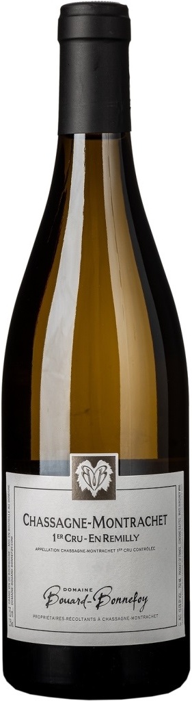 Domaine Bouard-Bonnefoy, Chassagne-Montrachet 1er Cru, En Remilly — белое бургундское вино для настоящих инсайдеров! Виноградник "Ан Ремийи" находится на вершине горы Мон-Раше, на границе между Шассань и Пулиньи. С этой высоты "En Remilly" выглядит как трамплин, с которого можно нырнуть почти в каждый легендарный виноградник Гран Крю, лежащий ниже. Виноградник имеет южную экспозицию и тонкую почву. Возраст лоз превышает 35 лет. Урожай собирается вручную. Для прессования плодов используется семейная реликвия — старый деревянный корзиночный пресс, проворачиваемый вручную. После ферментации с натуральными дрожжевыми культурами в бочках из французского дуба вино выдерживается в течение года в дубовых бочках, 20% которых — новые. Потенциал хранения вина составляет 10-12 лет.