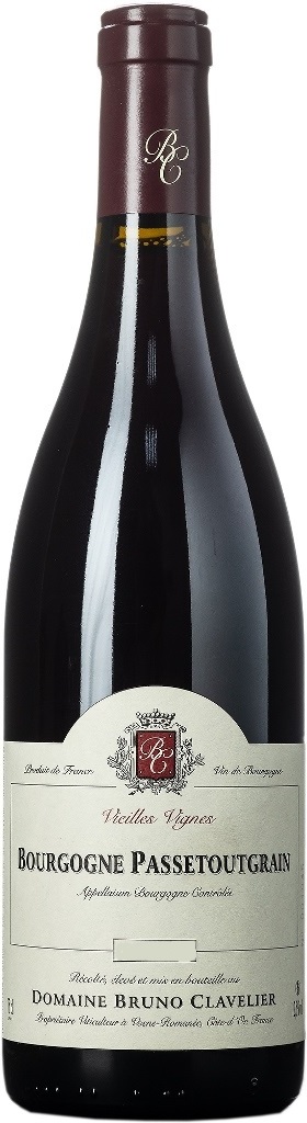 Domaine Bruno Clavelier, Bourgogne Passetoutgrain, Vieilles Vignes — свежее, ароматное красное вино, изготовленное из винограда сортов Пино Нуар и Гаме с одного участка с суглинистой слабоизвестковой почвой. Старые лозы, средний возраст которых превышает 75 лет, имеют ограниченную естественным образом урожайность. Из их плодов получается довольно структурированное вино, которое имеет хороший потенциал хранения. Bourgogne Passe-tout-grains (или Passetoutgrains) — это наименование, созданное в 1937 году, зона охватывает всю Бургундию и часть соседнего административного департамента Роны. Местные вина производятся по менее строгим стандартам и предназначены для повседневного потребления. Ферментация происходит с использованием натуральных дрожжей. В конце брожения применяется легкая перекачка сусла. Температура брожения контролируется два раза в день. В общей сложности винификация длится около трех недель. Затем сок отделяется от мезги в пневматическом прессе. После отстаивания в течение нескольких дней вино переливают в бочки под действием силы тяжести, которые находятся в подвалах, где естественным образом начинается яблочно-молочное брожение. Выдерживается вино 16 месяцев в бочках из мелкозернистого французского дуба Тронсэ и Алье. Сроки розлива выбираются в соответствии с лунным календарем и атмосферными условиями, добавление серы сведено к минимуму.