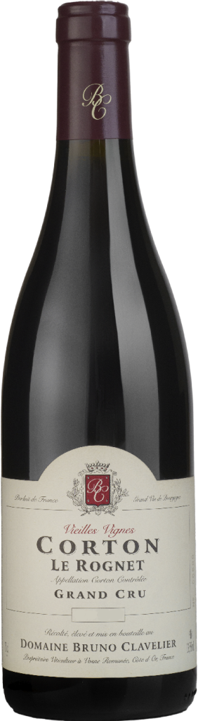 Domaine Bruno Clavelier, Corton Grand Cru, Le Rognet, Vieilles Vignes — ароматное, концентрированное, крупномасштабное вино, являющееся классикой Кортона во всех отношениях. Виноград для его изготовления поступает с виноградника "Ле Ронье", обращенного строго на восток и занимающего 34 акра на полпути вверх по склону между 270 и 280 метрами над уровнем моря. В его состав входят две трети лоз возрастом 70 лет и треть лоз возрастом 35 лет. Урожай с "Ле Ронье", расположенного на несколько километров южнее других Крю, всегда собирают на два-три дня раньше. "Ле Ронье" официально сертифицирован как органический, но поместье пошло дальше и практикует биодинамику в своем подходе к выращиванию виноградных лоз. Урожай собирается вручную. Ферментация с натуральными дрожжами проводится в открытых дубовых чанах в форме усеченного конуса. Выдержка в бочках французского производства из мелкозернистого дуба длится 18 месяцев. Сроки розлива вина по бутылкам выбираются по лунному календарю и атмосферным условиям.