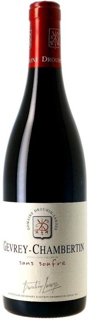 Вино Drouhin-Laroze, Sans Soufre, Gevrey-Chambertin производится из винограда сорта Пино Нуар, выращенного на винограднике "Sans Soufre" в апелласьоне Gevrey-Chambertin. Ягоды, собранные вручную с лоз, чей возраст приближается к 100-летию, обеспечивают будущему вину необычайное богатство вкуса и аромата. После сортировки на вибростоле, плоды осторожно отделяются от гребней и винифицируются естественным путем без прессования и добавления чистой культуры дрожжей. Процесс ферментации происходит под строгим контролем температуры, которая должна находиться в пределах 25-33°С. Мацерация длится на протяжении 8 дней. 14 месяцев напиток выдерживается в дубовых бочках (30% — новые) с обязательным еженедельным перемешиванием. Готовое вино разливается в бутылки без предварительного "облагораживания" — сцеживания, оклеивания и фильтрации.