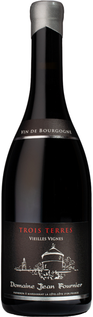 Domaine Jean Fournier, Marsannay, Trois Terres, Vieilles Vignes — изысканное, гармоничное красное сухое вино, которое производится из винограда сорта Пино Нуар. Ягоды произрастают на трех участках: "Les Longeroies", "Clos du Roy" и "Es Chezots". Лозы были высажены в 1935, 1945 и 1953 годах. На виноградниках применяются органические методы. Сбор урожая проводится вручную в ящики по 15 кг с сортировкой на винограднике. Урожайность составляет около 30 гл/га. Спонтанное брожение (66% целых гроздьев) с добавлением местных дрожжей проходит с регулярным ремонтажем и пижажем. Выдерживается вино в полумуидах и новых дубовых бочках в течение 18 месяцев. Ежегодный объем производства составляет 2000 бутылок.
