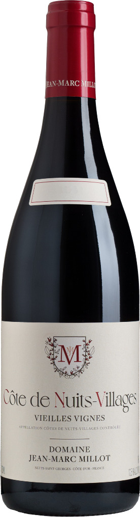 Domaine Jean-Marc Millot, Cote de Nuits-Villages, Vieilles Vignes — роскошное красное вино с богатым ароматом и элегантным вкусом, в производстве которого используется виноград сорта Пино Нуар, произрастающий на старых виноградных лозах на виноградниках с известково-глинистыми почвами. Сбор урожая проводится вручную, на винодельне плоды подвергаются сортировке на сортировочном столе. Винификация сусла проходит в стальных чанах с температурным контролем. Выдерживается вино 14-16 месяцев в бочках из французского дуба. Потенциал вина составляет 8-12 лет.