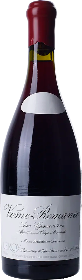 Domaine Leroy, Vosne-Romanee "Aux Genaivrieres" — роскошное, восхитительное вино, способное удивить с первых секунд своим чистым, шелковистым вкусом и богатым, фруктовым ароматом. В его производстве используется виноград сорта Пино Нуар, произрастающий на винограднике Les Genaivrieres в аппелласьоне Вон-Романе. После сбора урожая, ягоды подвергаются длительной ферментации в емкостях из нержавеющей стали и выдержке в новых дубовых бочках. Потенциал вина Вон-Романе "О Женеврьер" составляет 10-15 лет.