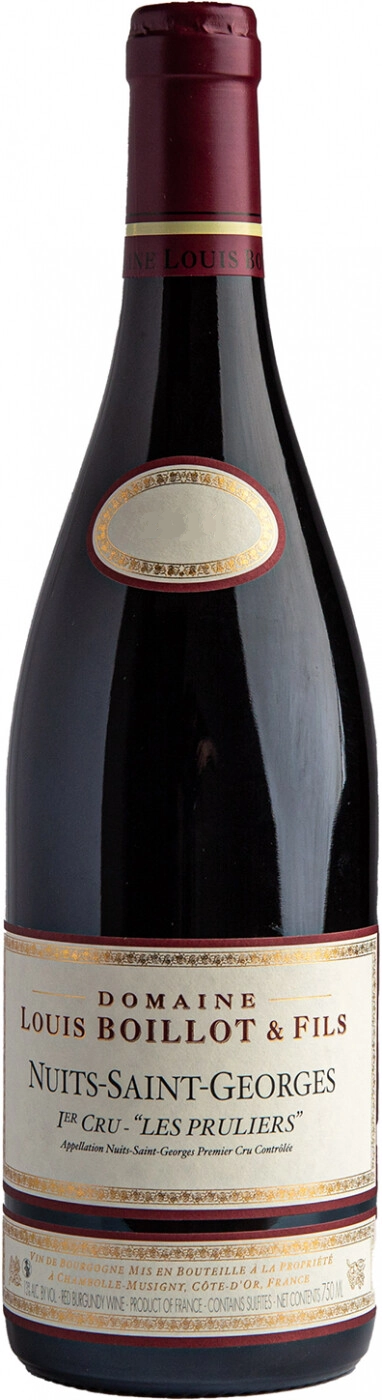 Domaine Louis Boillot & Fils, Nuits-Saint-Georges 1er Cru, Les Pruliers — тот самый знаменитый "железный кулак в бархатной перчатке", фантастическое вино, обладающее очень концентрированным, удивительно сложным и многогранным ароматом и мускулистым, насыщенным вкусом, который отличается выдающимся богатством. Виноград сорта Пино Нуар для его изготовления собирается с виноградника "Ле Прюлье", возраст лоз на котором превышает 100 лет. Вино будет храниться очень долго. В более молодом возрасте вину потребуется длительная аэрация или декантация. Общий потенциал хранения вина составляет 15-20 лет.
