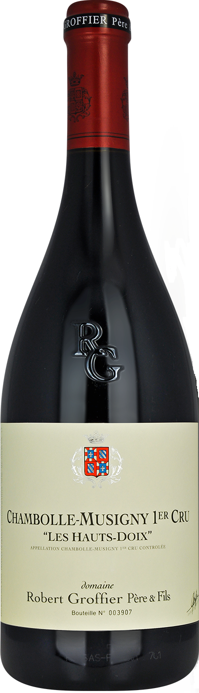 Domaine Robert Groffier Pere & Fils, Chambolle-Musigny 1er Cru "Les Hauts-Doix" — яркое, аппетитное красное сухое вино, изготовленное из винограда сорта Пино Нуар, который выращивается на небольшом участке (0,9 га) виноградника "Les Hauts-Doix" класса Премье Крю в апелласьоне Шамболь-Мюзиньи. Название коммуны Chambolle происходит от латинского Campus Bellenos (в переводе — поле Беллена, галльского божества горячих источников и врачевания). "Les Haut-Doix" — малоизвестный, но все же очень выдающийся Premier Cru, расположенный между "Les Amoureuses" и "Les Charmes". Его уникальный терруар предлагает пикантные и глубокие вина. На винограднике применяются методы устойчивого сельского хозяйства. Урожай собирается вручную со старых 70-летних лоз по достижении ягодами оптимальной спелости. Половина винограда очищается от стеблей. Технология изготовления вина предусматривает холодную 7-дневную мацерацию и ферментацию при контролируемой температуре с регулярной перекачкой сусла для полного извлечения цвета и танинов. Затем вино выдерживается в дубовых бочках, 25% из которых — новые, около года. Периодические дегустации позволяют определить точный срок готовности вина. Вино разливается в бутылки без предварительной очистки и фильтрации.