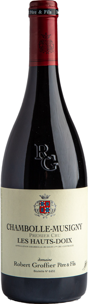 Domaine Robert Groffier Pere & Fils, Chambolle-Musigny 1er Cru "Les Hauts-Doix" — яркое, аппетитное красное сухое вино, изготовленное из винограда сорта Пино Нуар, который выращивается на небольшом участке (0,9 га) виноградника "Les Hauts-Doix" класса Премье Крю в апелласьоне Шамболь-Мюзиньи. Название коммуны Chambolle происходит от латинского Campus Bellenos (в переводе — поле Беллена, галльского божества горячих источников и врачевания). "Les Haut-Doix" — малоизвестный, но все же очень выдающийся виноградник, расположенный между "Les Amoureuses" и "Les Charmes". Его уникальный терруар предлагает пикантные и глубокие вина. На винограднике применяются методы устойчивого сельского хозяйства. Урожай собирается вручную со старых 70-летних лоз по достижении ягодами оптимальной спелости. Половина винограда очищается от стеблей. Технология изготовления вина предусматривает холодную 7-дневную мацерацию и ферментацию при контролируемой температуре с регулярной перекачкой сусла для полного извлечения цвета и танинов. Затем вино выдерживается в дубовых бочках, 25% из которых — новые, около года. Периодические дегустации позволяют определить точный срок готовности вина. Вино разливается в бутылки без предварительной очистки и фильтрации.