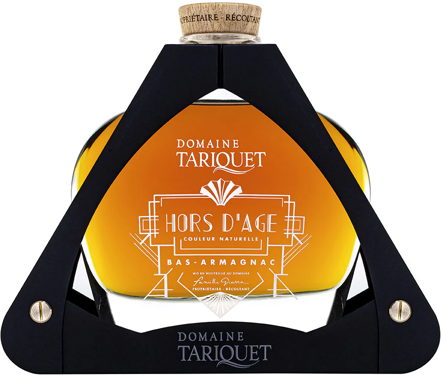 Domaine Tariquet, Hors d'Age, Carafe Art Deco — воплощение мастерства и времени. Арманьяк создан из двух автохтонных сортов — Уни Блан и Бако (60/40), отобранных исключительно с виноградников Ба-Арманьяка. После перегонки в традиционном непрерывном аламбике спирты выдерживаются минимум 10 лет в бочках. Средний возраст спиртов составляет 15 лет. За это время арманьяк медленно набирает благородную сложность и узнаваемый характер.