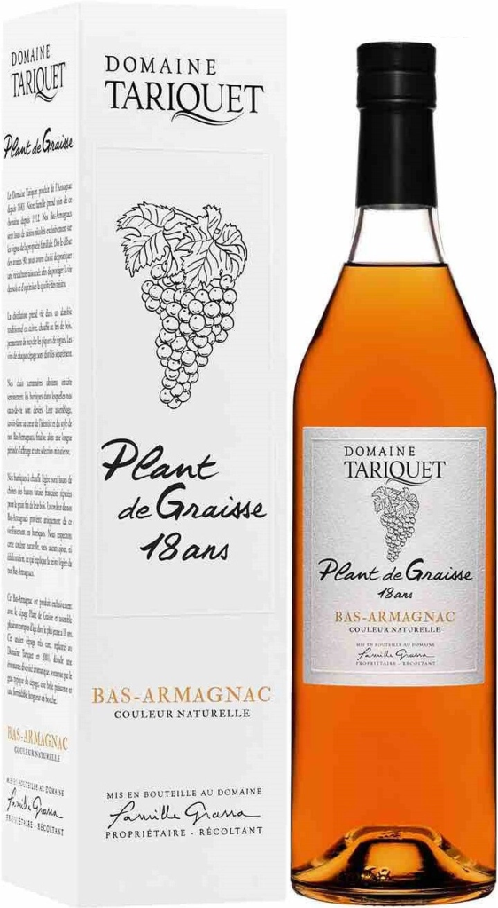 Domaine Tariquet, Plant de Graisse, 18 years — результат многолетней работы Домэн Тарике по возрождению почти забытого сорта План де Гресс. Высаженный заново в 2001 году, он стал редкостью даже по меркам региона, где традиционно доминируют Уни Блан и Фоль Бланш. Tariquet не только сохранил сорт, но и создал из него полноценно выдержанный арманьяк с уникальным сортовым профилем.