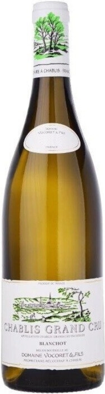 Белое сухое вино Domaine Vocoret & Fils, Chablis Grand Cru, Blanchot производится из винограда сорта Шардоне. Сбор урожая протекает в момент оптимальной спелости винограда, на винодельне ягоды подвергаются прессованию с последующей ферментацией при строгом температурном контроле. Chablis Grand Cru "Blanchot" обладает хорошей структурой, элегантным вкусом, богатым ароматом и стильным исполнением. Это вино имеет потенциал хранения не менее 15-20 лет и по праву оценено ведущими винными критиками.