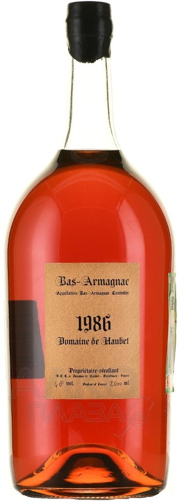 Domaine de Haubet, Vintage 1986 - арманьяк, изготовленный без каких-либо добавок и красителей из спиртов, выдержанных 27 лет в бочках, сделанных из гасконского дуба. Арманьяк характеризуется янтарным цветом, ярким, сбалансированным, маслянистым вкусом и многогранным ароматом с нотками дуба, кожи, орехов, кофе и сигарной коробки.