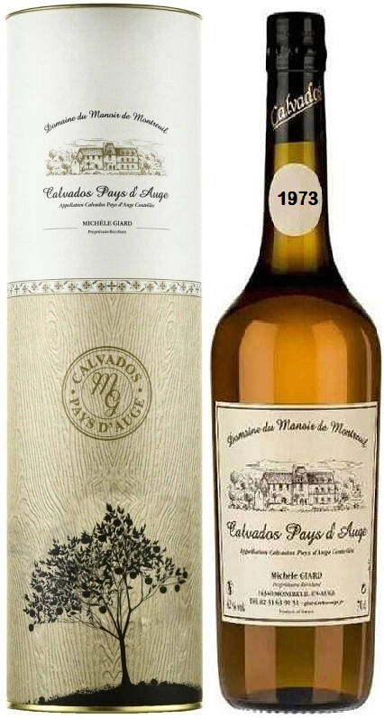 Domaine du Manoir de Montreuil, Calvados Pays d'Auge, 1973 — выдержанный кальвадос из Нижней Нормандии, производимый из различных сладких, горько-сладких, кислых и горьких сортов яблок. Яблоки собирают в конце осени, очищают вручную и оставляют на открытом воздухе до полного созревания. Затем их измельчают и прессуют, чтобы получить сок, который сбраживают в сухой сидр, после чего дважды дистиллируют в медных перегонных кубах. Полученные спирты выдерживают в старых французских бочках из черешчатого дуба. Выдержка винтажа 1973 года длилась не менее 49 лет. Перед розливом по бутылкам кальвадос разбавляют чистой водой до крепости в 42%. Кальвадос рекомендуется употреблять в чистом виде как дижестив, с изысканными мясными закусками, сырами, сладкой выпечкой и десертами. Можно использовать для создания коктейлей.