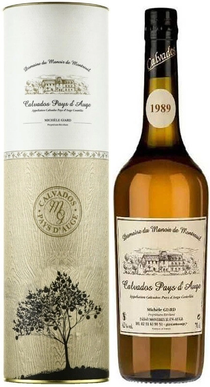 Domaine du Manoir de Montreuil, Calvados Pays d'Auge, 1989 — выдержанный кальвадос из Нижней Нормандии, производимый из различных сладких, горько-сладких, кислых и горьких сортов яблок. Яблоки собирают в конце осени, очищают вручную и оставляют на открытом воздухе до полного созревания. Затем их измельчают и прессуют, чтобы получить сок, который сбраживают в сухой сидр, после чего дважды дистиллируют в медных перегонных кубах. Полученные спирты выдерживают в старых бочках из французского дуба. Выдержка винтажа 1989 года длилась 33 года. Перед розливом по бутылкам кальвадос разбавляют чистой водой до крепости в 42%. Кальвадос рекомендуется употреблять в чистом виде (аперитива, дижестив), с изысканными мясными закусками, сырами, сладкой выпечкой и десертами. Можно использовать для создания коктейлей.