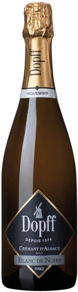 Dopff au Moulin, Cremant d'Alsace "Blanc de Noirs" Brut — белое игристое вино, для изготовления которого использовали виноград сорта Пино Нуар, а также традиционные методы изготовления шампанских вин. Креман д'Эльзас получают путем прессования красного винограда (но с белым соком). Умение качественного и искусного прессования из отборных сортов винограда определяет дальнейшие характеристики игристого вина. Урожай был собран вручную и подвергался ферментации на протяжении 8-14 дней, затем последовал процесс вторичной ферментации, но уже в бутылках, которая длилась 42 дня. Выдержку вина на осадке произвели в стеклянных бутылках на протяжении 2-х лет.
