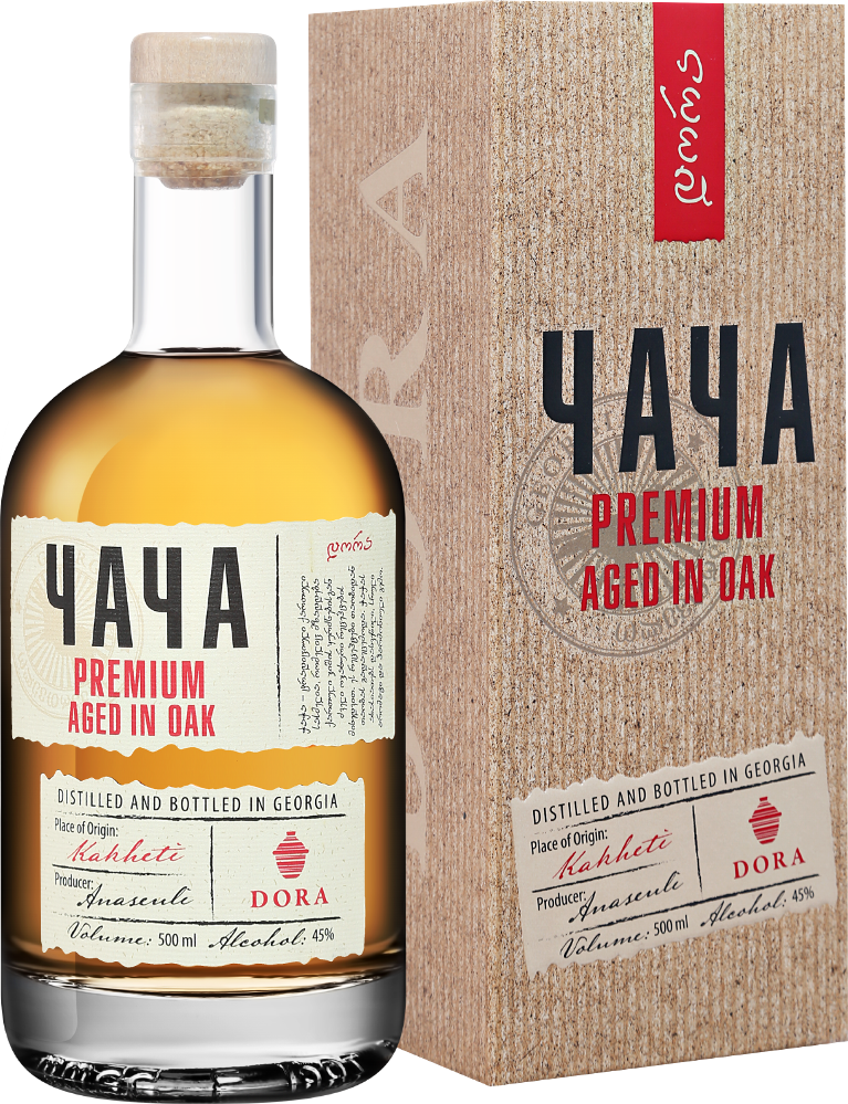Dora, Chacha Premium — традиционная виноградная водка (чача), обладающая ярким ароматом и богатым, многогранным вкусом. При изготовлении чачи применяется фракционная или прямая дистилляция выжимок винограда сорта Ркацители, проходящая в медных перегонных кубах. Затем технологи тщательно отделяют "сердце" дистиллята, а оставшиеся фракции, как правило, добавляют в следующую партию сброженного сусла перед перегонкой. Дистиллят разбавляется умягченной водой до достижения напитком требуемой крепости. Выдержка чачи в дубовых бочках длится не менее месяца.