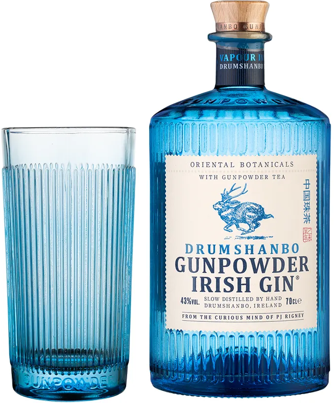 Drumshanbo Gunpowder - ирландский джин, созданный на основе 12 экзотических компонентов: восточных растений, цитрусовых фруктов и неповторимого чая Ганпаудер. Сначала джин медленно дистиллируется в медных кубах с добавлением 8 растительных компонентов: ягод можжевельника, таволги, кардамона, кориандра, корня ириса, тмина, ангелики и бадьяна. После этого в джин добавляют каффир-лайм, цитроны, азиатский грейпфрут и чай Ганпаудер и оставляют для созревания.