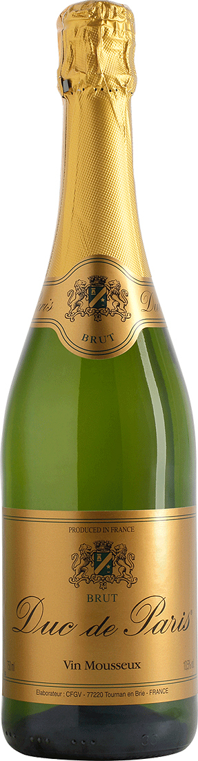 Duc de Paris, Brut — элегантное, освежающее игристое вино, обладающее свежим, гармоничным ароматом и элегантным вкусом. Оно производится из белых сортов винограда традиционным способом. Сухое игристое вино "Дюк де Пари" отлично гармонирует с легкими салатами и различными блюдами из морепродуктов, а также является превосходным аперитивом.